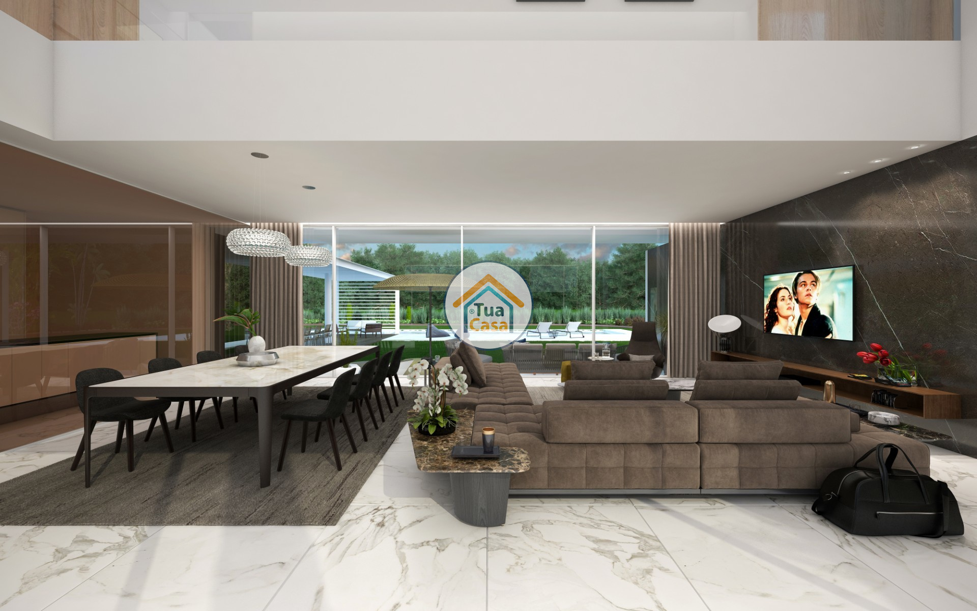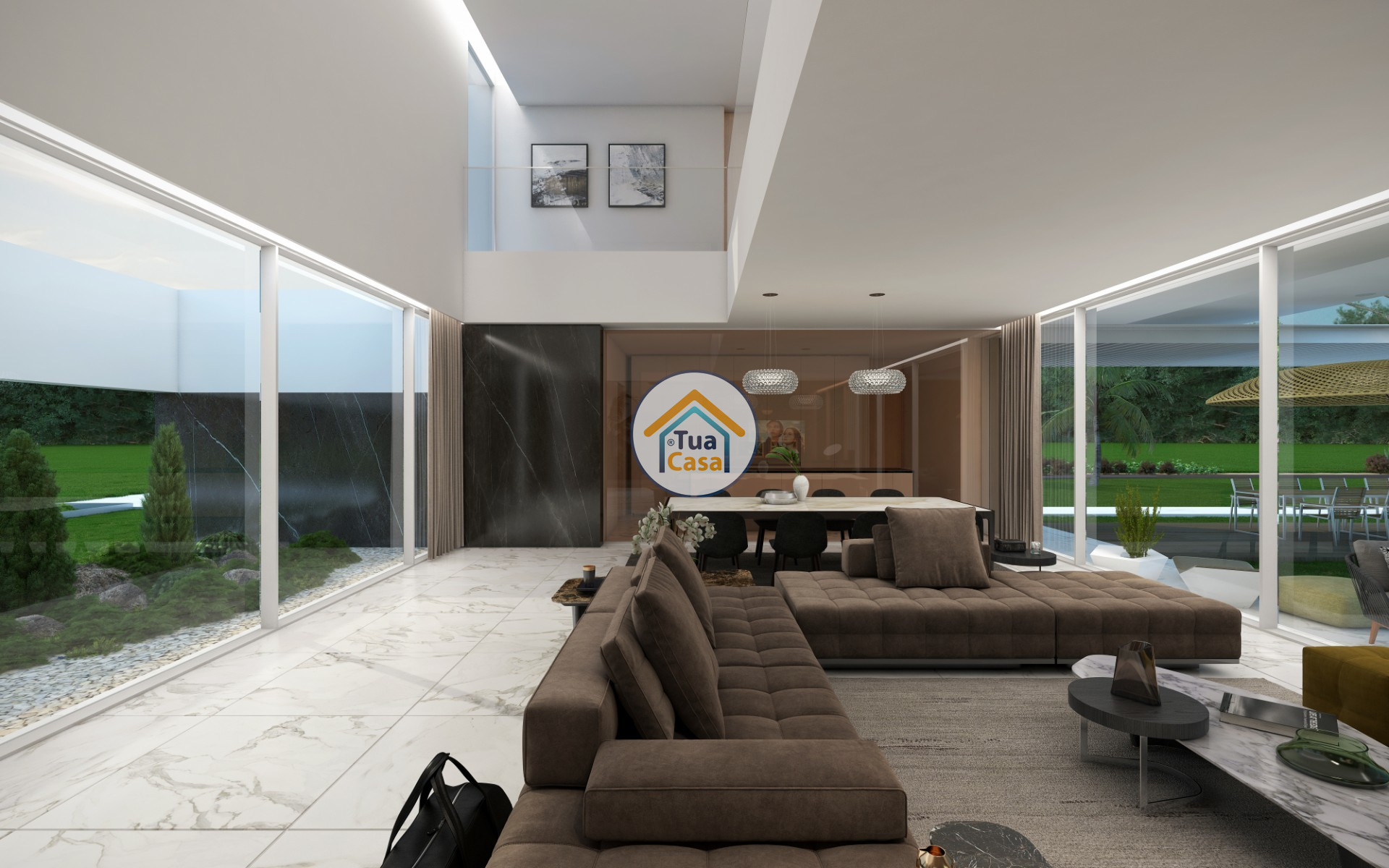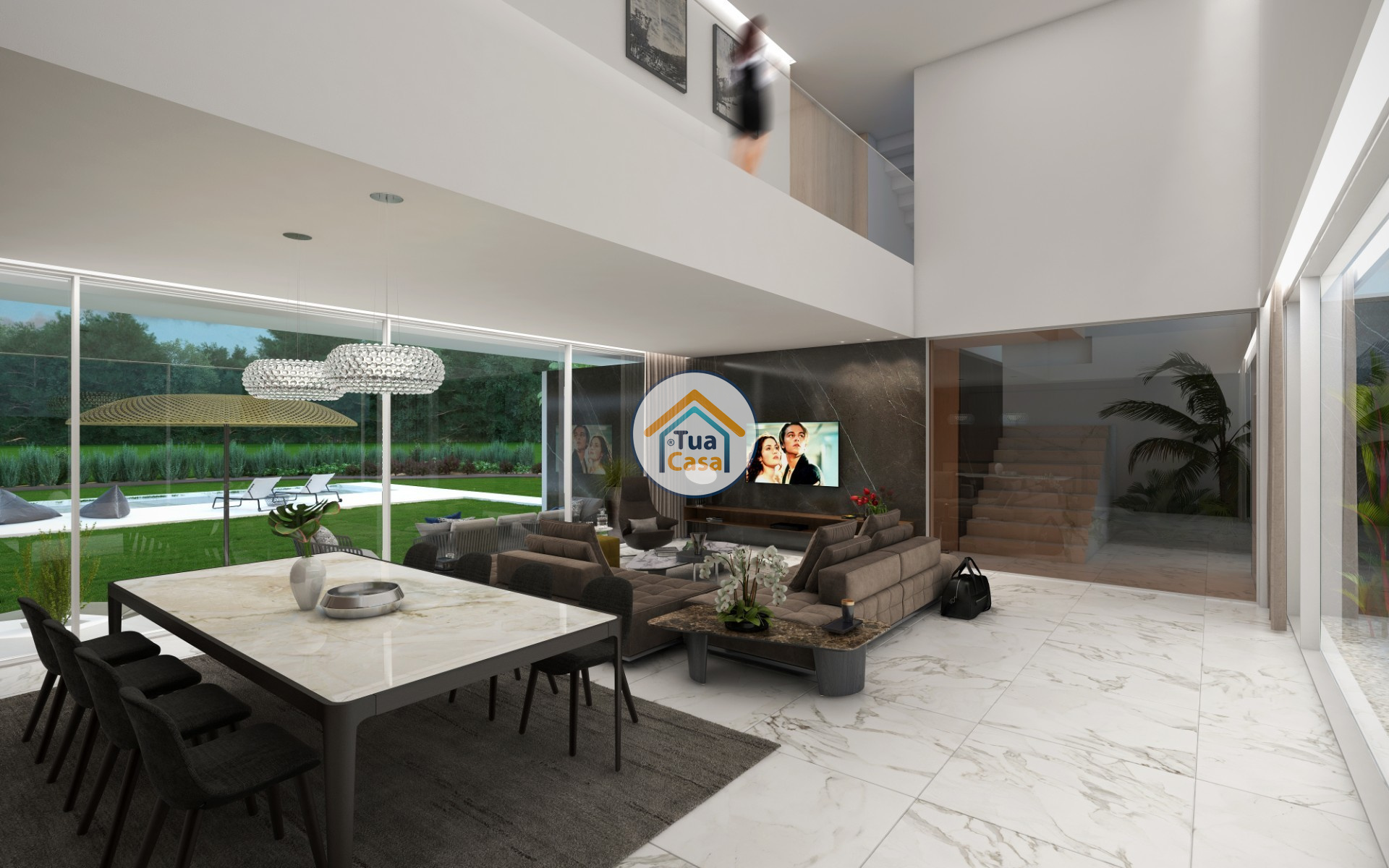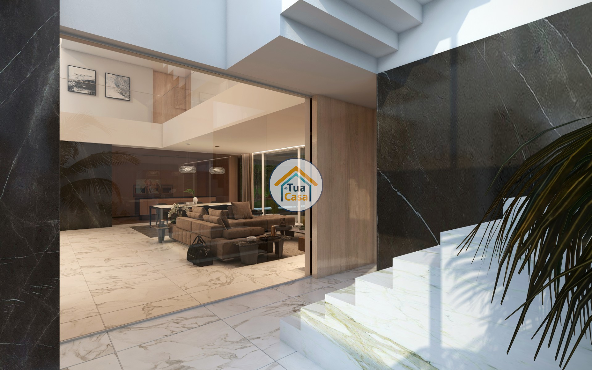 现代,宽敞的室内设计以及入口和客厅的双高天花板是这栋具有当代建筑风格的别墅的标志之一。